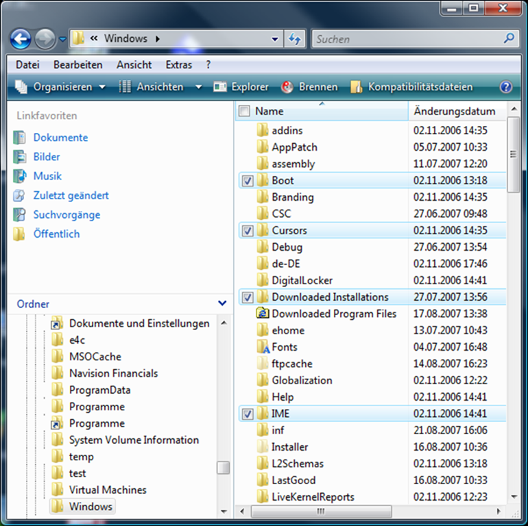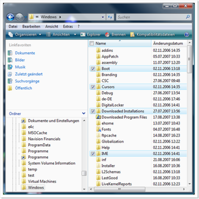 - OKIn Vista gibt es nun eine neue Funktion, um Dateien und Ordner auch per Checkboxen markieren zu können, wie auf nachfolgendem Bild zu erkennen ist: